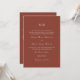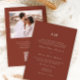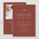 La sencilla y clásica invitación a la boda en monograma de terracota presenta una tipografía elegante y un diseño sofisticado. La parte posterior incluye una foto personalizado y código rsvp qr, para que los huéspedes puedan responder en el sitio web de su boda.