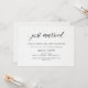 Estas invitaciones de fiesta después de la boda presentan un fondo con aspecto de papel de acuarela blanco y caligrafía negra elegante para un look moderno minimalista.