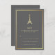 Invitación Elegante Torre Eiffel de Oro en RSVP de Boda Gris