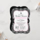 París, Francia, negro, blanco y elegante rosa, Francia, tema del glamour francés invitación a la ducha de novia con un patrón damasco negro. Presenta la Torre Eiffel y elementos de diseño formales vintage.