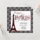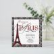 Elegantes invitaciones de baile de la Torre Eiffel roja y negra en París. Añade los detalles del evento al frente y/o detrás de esta hermosa invitación al programa de París añadiendo los detalles del evento, el estilo de fuente, el tamaño y color del tipo de letra y la redacción.