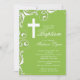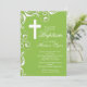 Comience el Bautismo Santo de su bebé con nuestra invitación al bautismo blanco y rosa dulce, con una hermosa fantasía blanca, florida con una cruz blanca sobre un moderno fondo verde primaveral. En la parte trasera de nuestra invitación se muestra una combinación de personalizares. Fácil de agregar, simplemente agregue su información de evento y está listo para ir. La invitación perfecta para una primera comunión sagrada, bautismo, bautismo o fiesta de confirmación. En nuestra tienda podrá disfrutar de una invitación al bautismo elegante y moderno en una amplia selección de fondos.