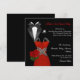 Invitación Elegante Tux Rosa Roja Corbata Negra Vestido Fiest