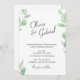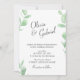 Elegante follaje de sabio botánico verde eucalipto. Simple Invitación a la boda. El texto está escrito en hermosa tipografía con acentos de un clásico guión de caligrafía. Con su sofisticada atmósfera, esta invitación sería perfecta para un boda formal.