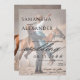 Elige esta magnífica plantilla minimalista y crea las invitaciones perfectas para la boda con este diseño de invitación a la boda de imitación de faux vellum overlay, con letras únicas a mano en blanco y negro y dos de tus fotos de compromiso: una en la parte delantera, bajo el efecto digital "vellum overlay", la otra en la parte posterior. Para productos a juego., por favor revisa mi colección o envíame un mensaje a través del chat de Zazzle. Gracias! Una versión con el código QR de RSVP, y una invitación real al Relieve metalizado de oro también están disponibles en la colección de abajo.