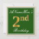 Este diseño de invitación simple y elegante para una fiesta de cumpleaños presenta un mensaje personalizado como "El cumpleaños número 2 de ANameHere" (con el "2" teniendo un aspecto dorado falso/imitación) dentro de un área cuadrada de color verde que presenta un simple contorno de borde. El nombre está en un texto tipo escritura de color blanco elegante y se puede personalizar. La parte trasera presenta detalles de invitación personalizables. Una invitación de cumpleaños como esta podría ser utilizada quizás cuando se invita a la gente a una fiesta de cumpleaños que se celebra para alguien que está celebrando su segundo cumpleaños. [~Z0000225]