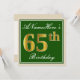 Invitación Elegante, verde, falso oro 65 cumpleaños + nombre