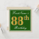 Invitación Elegante, verde, falso oro 88º cumpleaños + nombre