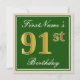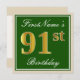 Invitación Elegante, verde, falso oro 91 cumpleaños + nombre