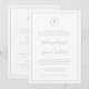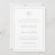 Invitación simple a la boda con su monograma en un círculo en la parte superior y los detalles de su boda rodeados de un borde delgado. Sus nombres están en una elegante letra manuscrita. Todos los elementos de diseño son verdes sobre un fondo blanco y pueden cambiarse en la herramienta de edición de diseño. El diseño clásico y tradicional hace que esta invitación sea ideal para un boda formal.