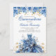 Invitación Elegante vestido floral azul dorado Quinceañera