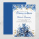 Celebra con estas elegantes invitaciones de cumpleaños Quinceañera inspiradas en el vestido floral azul y dorado. Personaliza con tu propio texto y detalles.