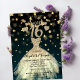 Invitación Elegante Vestido Oro Estrellas Purpurina Dulce 16