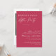 La invitación a la fiesta de recepción de este boda para la independencia incluye una tipografía de serif limpia y simple y una caligrafía elegante en un fondo viva magenta con una foto y código QR para un limpio aspecto minimalista y moderno, que es una hermosa manera de informar a tu familia y amigos de que estás casado y que ya es hora de fiesta. La sencillez de este diseño le da un toque de elegancia a su invitación boda. Funciona bien con muchos temas bodas y sin duda una gran adición a su boda. Simplemente personalizar los nombres y la redacción en unos pocos pasos fáciles y personaliza la tarjeta de invitación con tu foto de la pareja feliz y reemplaza el código QR con el tuyo al fondo de la invitación para darle un agradable toque personal. Nota: La elegante caligrafía de las frases "Feliz para siempre después del Fiesta" y "Por favor, únase a nosotros para una recepción para celebrar" en el frente, así como la frase "y" y "detalles + rsvp" en la parte posterior junto con las líneas y otras obras de arte gráficas y elementos no pueden editarse, eliminarse ni moverse. Están arreglados. Si necesita cambiar el color, puede personalizar la tarjeta de invitación. Puede personalizar y personalizar la invitación para que se ajuste a sus necesidades de eventos de boda y simplemente haga clic en el personalizar de la invitación. Puede personalizar fácilmente la invitación con el texto como descarga digital y enviarla electrónicamente y compartirla con sus invitados a través de mensajes de texto, correo electrónico o medios sociales. También puede enviar o enviar la invitación a sus invitados. O se pueden obtener las dos cosas — invitación impresa y recibir la invitación en formato digital como descarga instantánea.