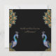Con sus plumas brillantes y su magnífico plumaje, este elegante pavo real representa fuerza y confianza con el equilibrio perfecto de delicada y sorprendente compostura. Invite a sus huéspedes a su Fiesta de cócteles con esta elegante y formal invitación de diseño de pavo real. ¡personalizable total! Artista original pintado a mano en acuarela.
