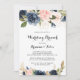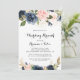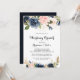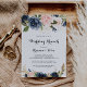 Este elegante brunch boda floral de invierno es perfecto para un día moderno después de que la familia boda y los amigos se reúnan para el brunch. El diseño se compone de bonitos azules oscuros pintados a mano, azules, marinos, rosados, ondulados, flores doradas y follaje verde, repartidos en elegantes ramos.