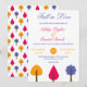 Esta elegante invitación a la boda de otoño es perfecta para un boda moderno de otoño. El diseño es sencillo, con árboles coloridos y una tipografía colorida y elegante sobre un fondo blanco