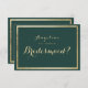 ¿Serás mi dama de honor? Elegante, moderna y verde bosque, y falsa invitación a la boda de una dama de honor. Esta invitación a la dama de honor de lujo con un dorado verde. Las invitaciones a la boda de este moda de cristal son perfectas para cualquier chica elegante y sofisticado con un cristal. Este diseño es perfecto para el moderno y elegante evento fiesta .Design con su propio mensaje e información. Todos los diseños están impresos.