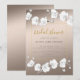 Ramas de orquídeas blancas, dibujadas a mano con lápiz de grafito, se entremezclan en esta sencilla pero sofisticada, elegante y a la vez moda, invitación a la ducha con flores de matrimonio, con un fondo de cristal esmerilado de color beige. Un clásico moderno que se basa en elementos tradicionales, así como en elementos nuevos, modernos y distintivos, como la tipografía simple y el marco dorado discreto. Femenino y romántico. Busque otros diseños en la suite "White Orchid Dream".