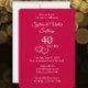 Personalice esta elegante y sencilla invitación a la fiesta de aniversario de bodas número 40 añadiendo los nombres de la pareja y los detalles de la fiesta. Mis corazones entrelazados diseñados originalmente acentúan el moderno y elegante texto "40 años". Personalice esta tarjeta roja rubí con tipografía de moda para sus necesidades. También puede cambiar el número para un aniversario número 25 personalizado, o aniversario de bodas número 10, 50 o 60 o cualquier aniversario. Esta sería una hermosa y romántica invitación a la fiesta de aniversario de bodas. Vea mi colección para decoración de mesa y cristalería de boda de aniversario de bodas número 40 en rojo rubí a juego.