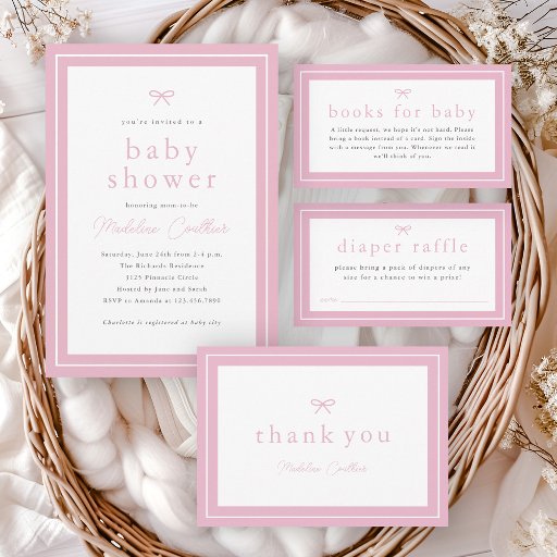 Simple Pink Bow Girls Baby Shower InvitationDiseñado por Stacey Meacham