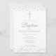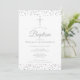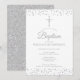 Con delicados corazones de plata sobre un fondo azul elegante, puedes personalizar estas elegantes invitaciones con los detalles especiales de tu bautizo en tipografía chic. Diseñado por Thisisnotme©