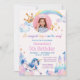 Elegantes diamantes de arcoiris unicornio coronan la invitación de cumpleaños con foto Contáctame por artículos coincidentes o para personalización, Rosas de Rubor Bebé ©