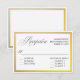 Una hermosa y elegante tarjeta de respuesta de boda con un texto de RSVP en caligrafía española. Edite la fecha de respuesta y otro texto como desee. Este diseño incluye selecciones de opciones de plato principal para sus invitados. Edite el texto del plato principal con sus opciones (carne, pollo, vegetariano, etc.). Puede eliminar este bloque de texto si no lo necesita. Un amplio borde dorado rodea el texto en un estilo moderno y de buen gusto.