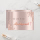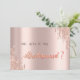 Tarjeta de dama de honor elegante y chic con gotas de brillo de oro rosa.