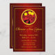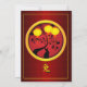 Celebre el Año Nuevo chino con este elegante diseño con un fondo rojo texturado y un círculo dorado con linternas doradas, una silueta de árbol y conejo.