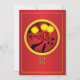 Celebre el Año Nuevo chino con un diseño elegante con un fondo rojo y un círculo dorado con lámparas de oro, una silueta de árbol y rata, y las letras para ratas.