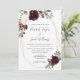 Esta invitación nupcial para Navidades es perfecta para un elegante boda de vacaciones. El diseño presenta hermosas acuarelas blancas y borgoñosas con pino, bayas sagradas y vegetación de eucalipto. Este es un esquema de color perfecto para una boda de invierno. Haga que esta invitación sea suya incluyendo sus nombres y todos los detalles de su boda. Para una mayor personalización, utilice la herramienta de diseño avanzada para modificar esta plantilla.