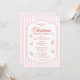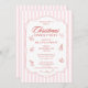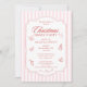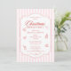 Elegante Navidades corporativos Cena Invitaciones Fiestas de vacaciones con elementos de Navidades rojos simples y extravagantes sobre un fondo rayado rosa y blanco con el texto "Navidades Fiesta de cena" en elegante tipografía de caligrafía roja. Elegante, moderno y moda para su fiesta de vacaciones corporativa. Creado por Evco Studio www.zazzle.com/store/evcostudio