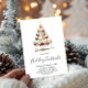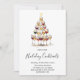 Levante una copa de estilo con esta elegante invitación a un cóctel de vacaciones con una torre de cristal acuático de moda en forma de árbol de Navidad, coronada por una estrella dorada. Perfecto para reuniones festivas, fiestas de compañía o celebraciones íntimas con amigos de Navidades. La tipografía moderna y el blanco inmaculado hacen de esta invitación sofisticada y alegre. Personalice fácilmente con sus detalles del evento para una memorable celebración de temporada.