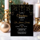 Personalizado Moderno pero elegante Navidades invitaciones del partido en falsos colores dorados y negros. Fondo con estrellas colgantes / luces con adornos de burbujas. El purpurina de oro falso resplandece el fondo en la espalda. Plantilla modificable - simplemente agregue su texto. Todo el texto se puede cambiar de tipo de letra, color y tamaño. Perfecto para fiesta en casa, fiesta de casa, fiesta de oficina, fiesta de vacaciones, empresa o cualquier otra ocasión de la temporada de invierno.