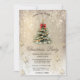Una elegante invitación para fiestas navideñas con un árbol de Navidad con arco rojo, y copos de nieve. Estas hermosas invitaciones a Navidades son perfectas para Navidades que invitan a cenar, invitaciones de intercambio de regalos de vacaciones, recaudaciones de fondos para Navidades, invitaciones para fiestas de vacaciones y otros eventos que se llevan a cabo durante el mes de diciembre. Utilice los campos de plantilla para agregar su propia información de eventos.
