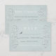 Hay mucha información en esta tarjeta de respuesta. En el reverso se pueden enumerar las opciones del menú para los asistentes a la boda. También hay un espacio para que la gente indique si tiene alguna alergia alimentaria que los catering deban tener en cuenta. El color azul claro y el elegante diseño de remolino de corazón están en la parte delantera y trasera.