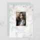 Añadir tu foto - Triple marco dorado en un hermoso y elegante diseño floral de color acuático peony. La vegetación es pálida, con flores de piedra blanca crema y brotes de flores de coral muy pálidas. Sólo un toque de color. Reverso verde pálido. Diseño creado para el BarefootBride™ por ©WhimsicalArtwork™ Hemos creado esta plantilla para que sea fácil de personalizar con su propia información. Forma parte de una suite de papel boda coordinada.