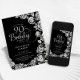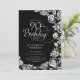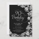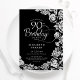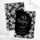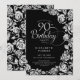 Invitación floral de plata negra a la fiesta de cumpleaños número 90. Diseño elegante con rosas, Relieve metalizado falso plateado y tipo de letra de guión de tipografía. La carta de invitación a la moda es perfecta para una elegante celebración de cumpleaños femenina. Se puede personalizar a cualquier edad. Personaliza con tus propios detalles. Invitaciones Zazzle impresas o una plantilla imprimible digital de descarga instantánea.