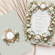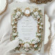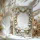 Fije el tono de su día de boda con este exquisito diseño de invitación, con delicadas rosas blancas rodeadas de frondosos paisajes verdes. La carta está enmarcada con motivos dorados barrocos y de inspiración Art Déco, lo que le da un toque atemporal y sofisticado. El suave fondo verde sabio le da un toque de elegancia, lo que lo hace perfecto para bodas formales o eventos románticos. Los efectos oro y grabado en relieve forman parte del diseño impreso y no incluyen Relieve metalizado metálico real ni texturas elevadas.