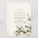 Moderna Boda Minimalista Invitación las rosas blancas con polvo de oro son una invitación elegante y clásica. El diseño presenta un tipo de letra manuscrito y un diseño minimalista moderno. Para cambiar detalles, haga clic en "Personalizar".