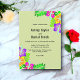 Esta elegante invitación a las bodas tropicales es perfecta para un boda de verano moderno. El diseño es sencillo, con flores amarillas, violetas y rosas floridas, con una tipografía negra elegante sobre un fondo verde sabio.
