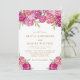 Invite a sus huéspedes a su boda con esta elegante invitación que incluye tonos rosa y violeta bonito, ramo de flores de rosas acuáticos, hojas verdes y especias doradas.