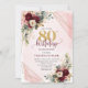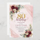 Invitación Elegantes rosas de oro de boho burgundy 80 cumplea