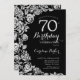 Invitación Elegantes Rosas de Plata Negra 70 cumpleaños