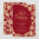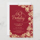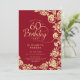 Invitación a la fiesta de cumpleaños número 60 de la floral dorada roja. Diseño elegante con rosas, Relieve metalizado de oro falso y tipografía tipo guión. La carta de invitación a la moda es perfecta para una elegante celebración de cumpleaños femenina. Se puede personalizar a cualquier edad. Personaliza con tus propios detalles. Invitaciones Zazzle impresas o una plantilla imprimible digital de descarga instantánea.