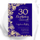 Invitación a la fiesta de cumpleaños 30 de Purple Gold Floral. Diseño elegante con rosas, Relieve metalizado de oro falso y tipografía tipo guión. La carta de invitación a la moda es perfecta para una elegante celebración de cumpleaños femenina. Se puede personalizar a cualquier edad. Invitaciones Zazzle impresas o una plantilla imprimible digital de descarga instantánea.