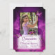 Esta elegante invitación a la quinceañera de mariposa violeta con marco decorativo de fotos antiguas es versátil para temas de color morado oscuro, morado claro y fiesta de lavanda. La plantilla de presupuesto de la quinceañera morado es fácil de modificar. Perfecto para los temas de fiesta de morado mis membrillos. El marco de una foto violeta decorativa es hermoso con tu retrato de traje de quinceañera. La popular distribución de invitaciones color púrpura rosa de quinceañera es ideal para tarjetas digitales, archivos digitales para compartir invitaciones de texto. El marco de fotos original y elegante es hermoso con tu retrato de traje de quinceañera púrpura.