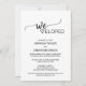 Esta sencilla tarjeta de caligrafía negra es perfecta para un fiesta de recepción de temática moderna o rústica. El diseño minimalista incluye un elegante guión de broche y un bonito corazón femenino. El respaldo presenta un patrón clásico de hojas y ramas. Las tarjetas RSVP se venden por separado.