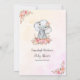 Fondo acuático de color coral y rosa chispeante con esquinas florales. Este es un juego de ducha de bebé que conoce a papá. Una adorable niña elefante con flores encima de su oído y un pulverizador de flores bajo sus dedos de los pies. Plantillas proporcionadas para usted, por lo que es una forma fácil de hacer esto para su fiesta.